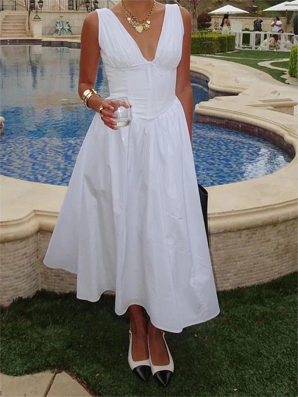 Plain Sleeveless Midi Dress 1120995